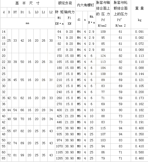 Z14型脹緊聯(lián)接套適用于軸和軸套之間的無鍵聯(lián)結(jié)裝置可從外部對軸套施加夾緊力,使軸與軸套之間形成機械壓縮配合,而傳遞扭矩,脹套本身不傳遞任何力矩及負載,容易安裝、拆卸.